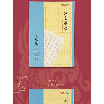 得力小四开12格毛边纸(黄色)书画练习纸八开15格毛边纸书法学生 得力75331八开12格毛边纸30张/袋