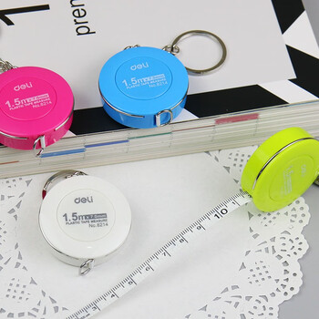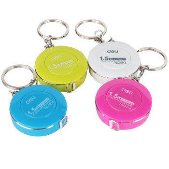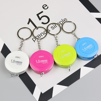得力(deli) 8214 迷你便携皮卷尺 钥匙扣款小巧随身1.5米卷尺 多功能测量尺 【颜色随机】单个装