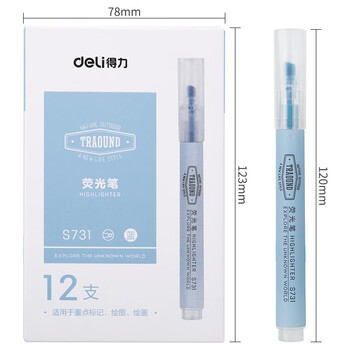得力(deli) 荧光笔学生记号笔荧光笔套装学生作业标记糖果色重点标记绘画备注多色笔 S731 蓝色12支