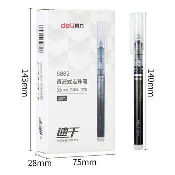 得力(deli)中性笔黑色直液式走珠笔水笔签字笔学生考试12支/盒 办公用品 0.5mm直液式 S862 黑色
