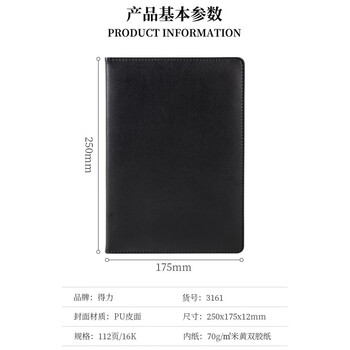 • 商品名称:得力3161高级记事本-16k-112张(黑)