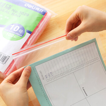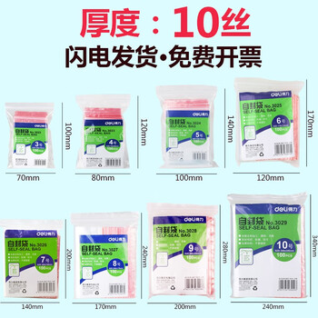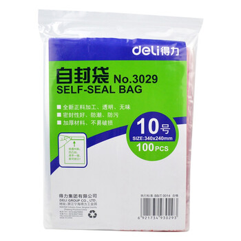 • 商品名称:得力(deli) 自封袋 塑封袋子加厚密封包装袋 透明封口袋 100个/包 10号(33*24cm)3029