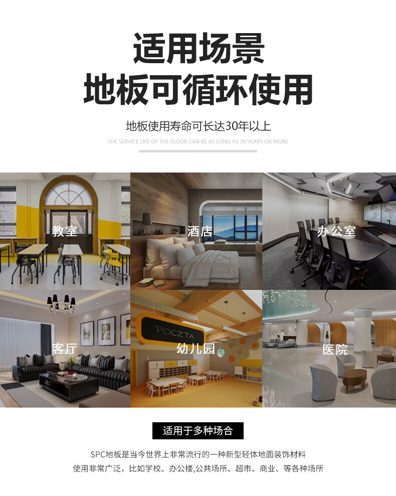欣荣达石塑地板2mm环保防水耐磨地板木纹卧室地板水泥地