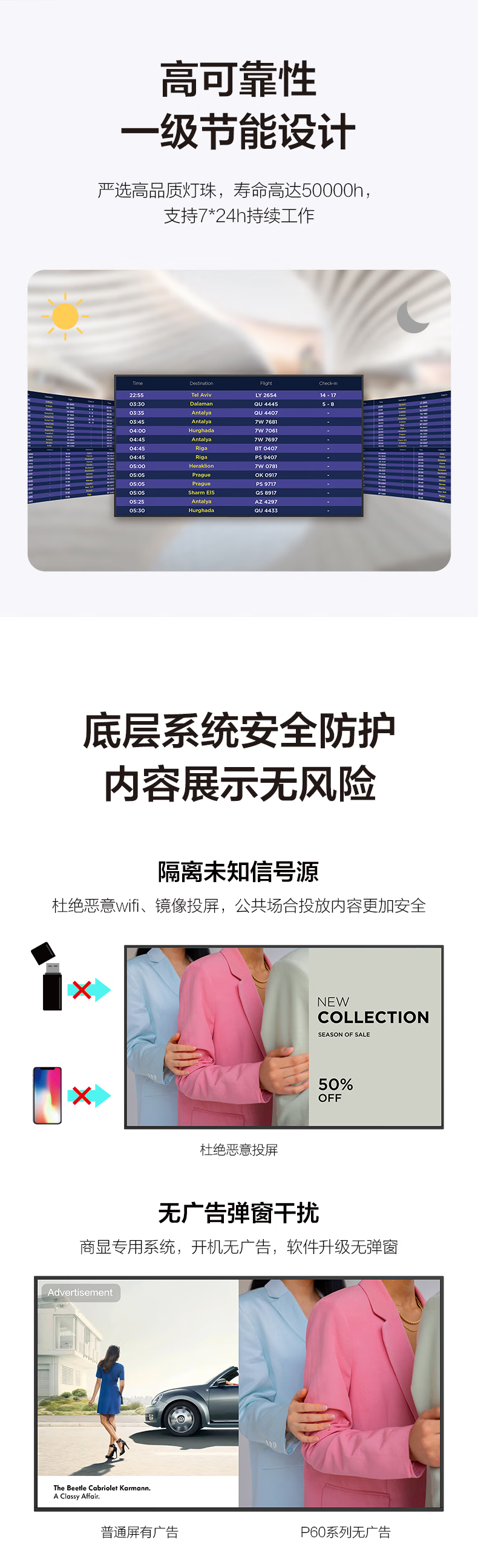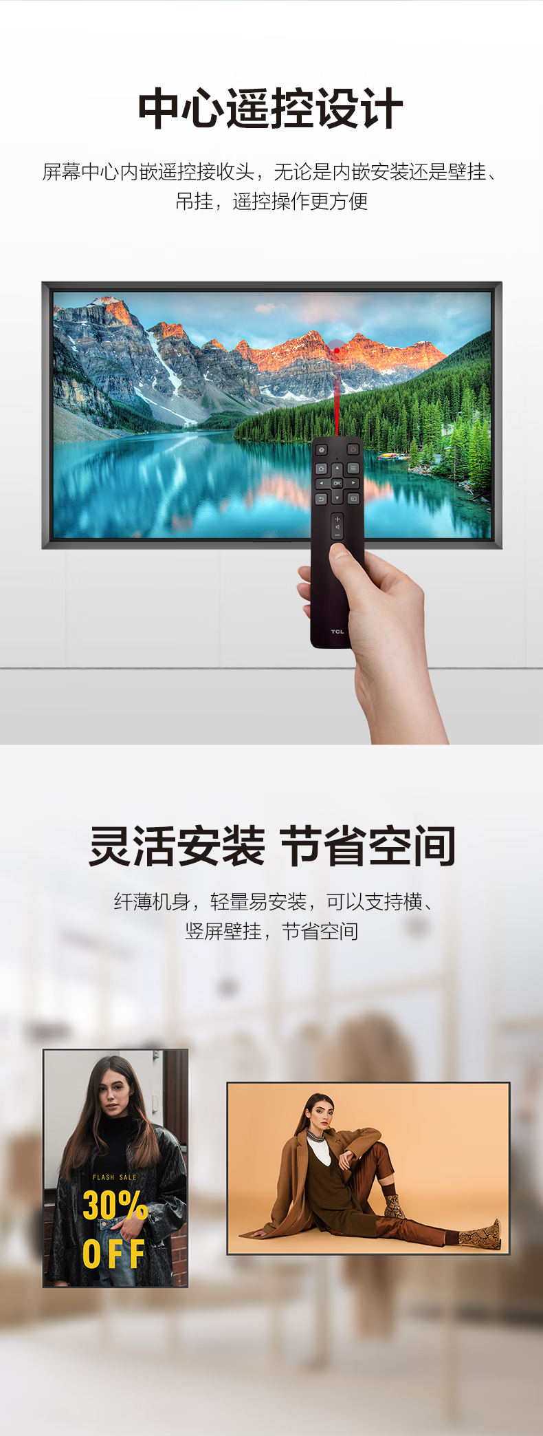 TCL门店电视 商用显示屏数字发布屏PID65P