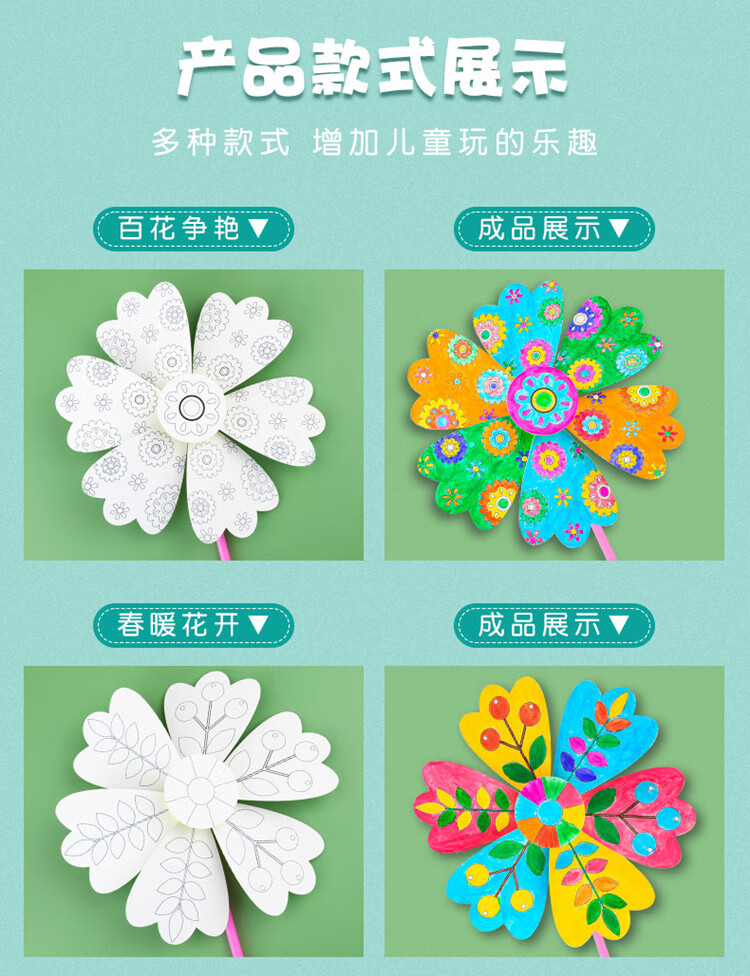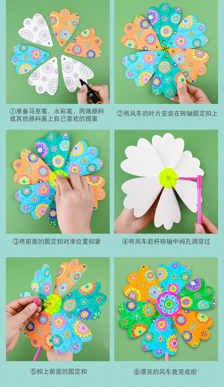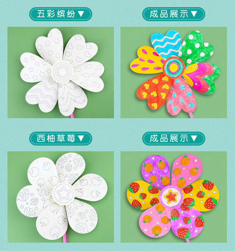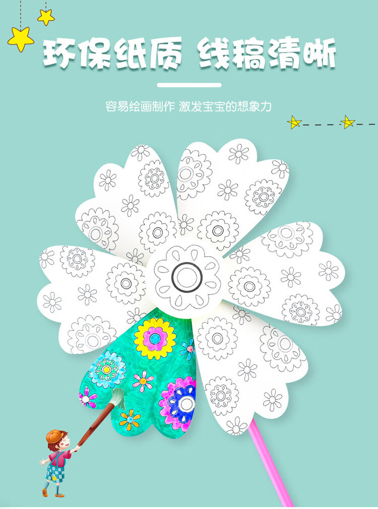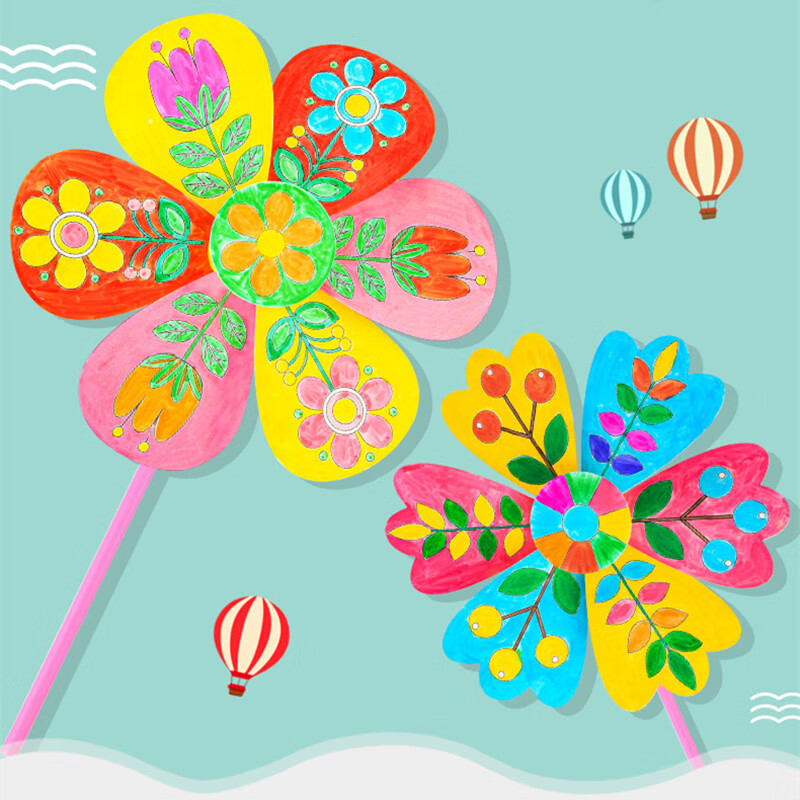 叁沃 空白绘画风车幼儿园儿童手工制作材料包diy创意美术涂鸦涂色玩具 【空白风车】50个起