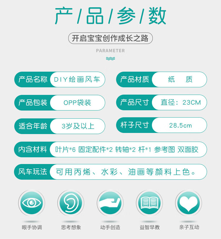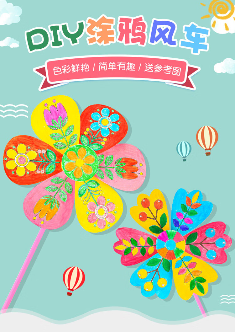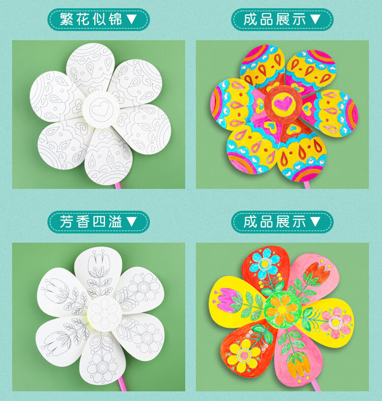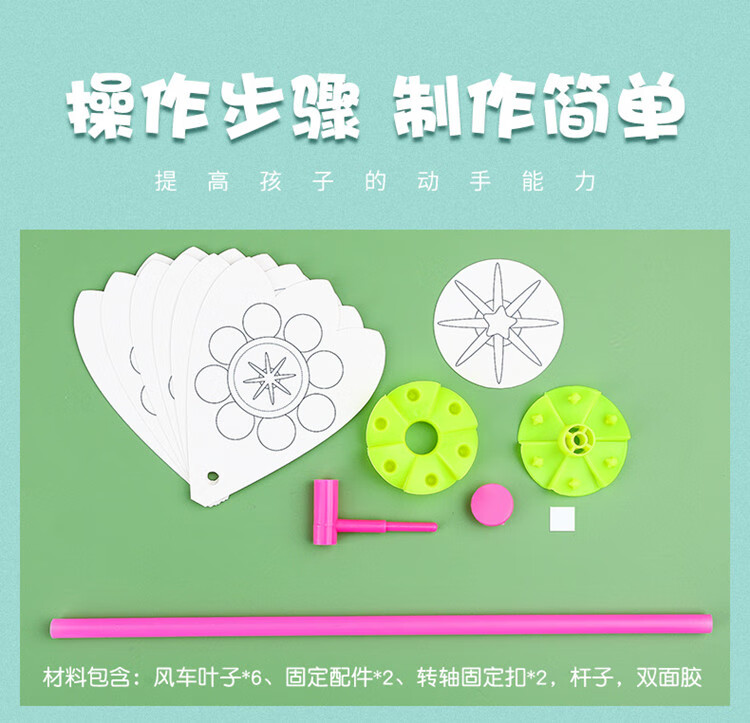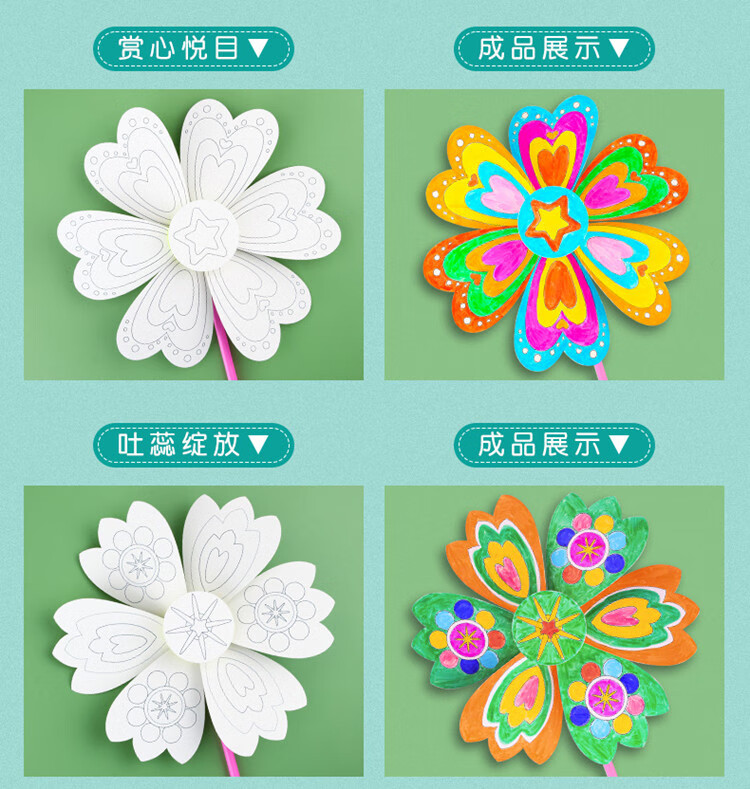 叁沃 空白绘画风车幼儿园儿童手工制作材料包diy创意美术涂鸦涂色玩具 【空白风车】50个起