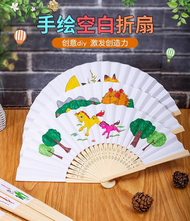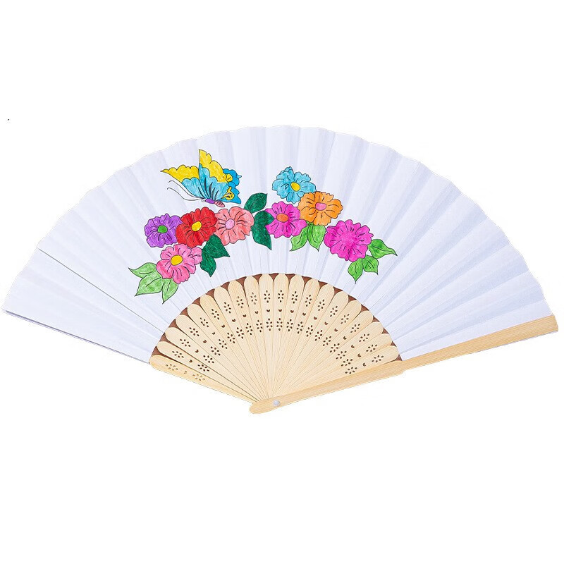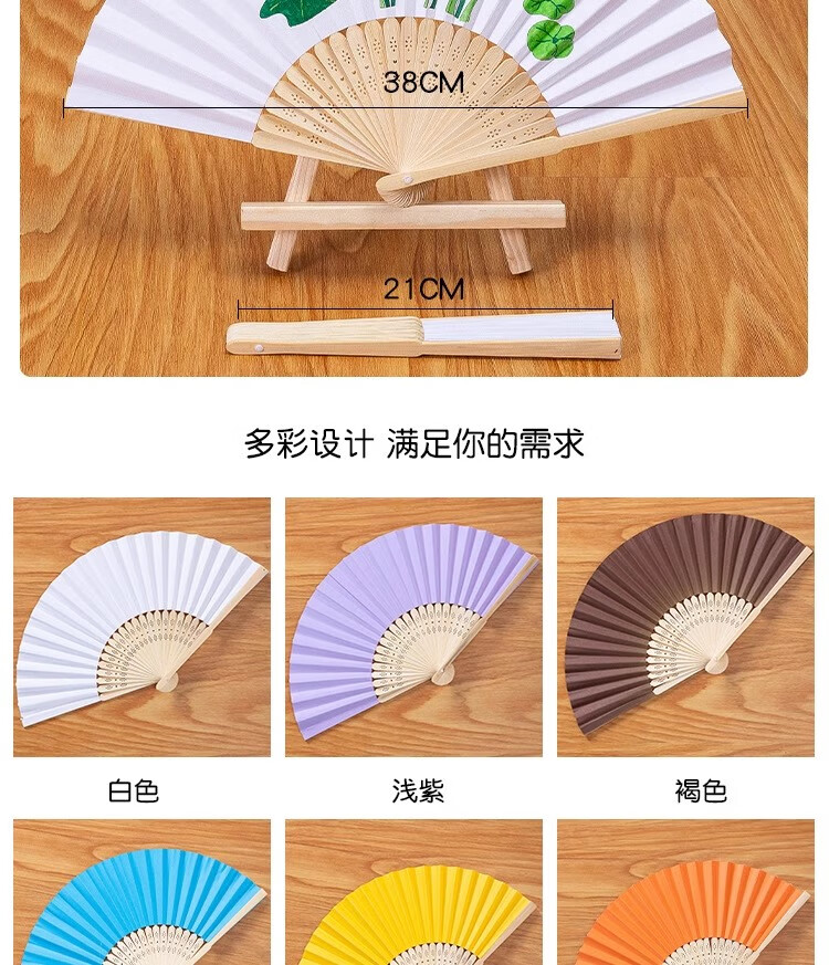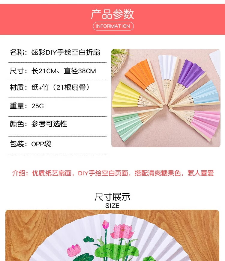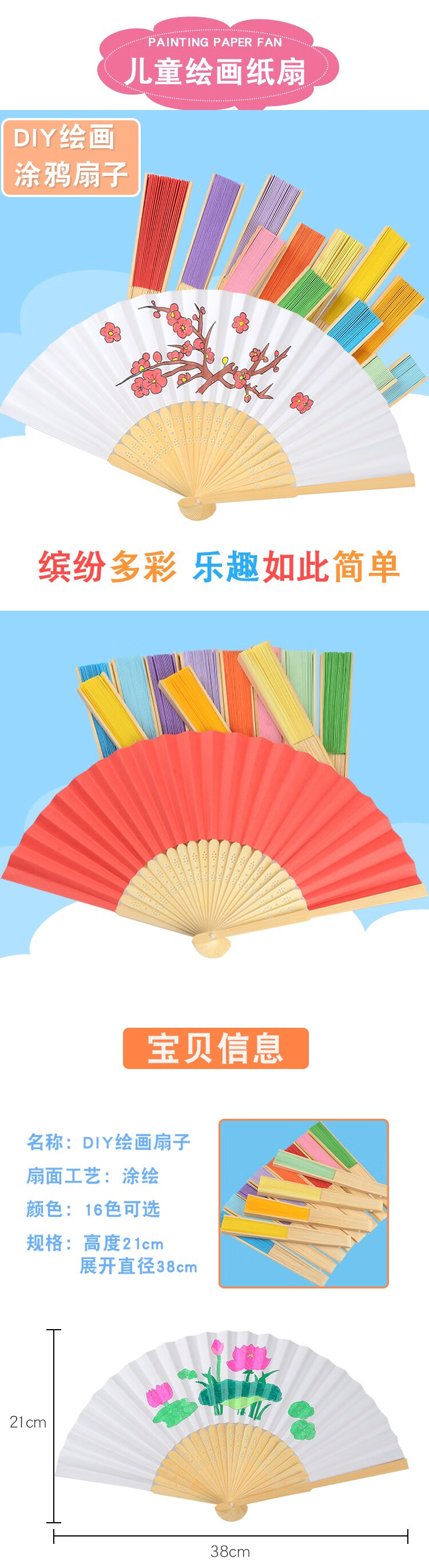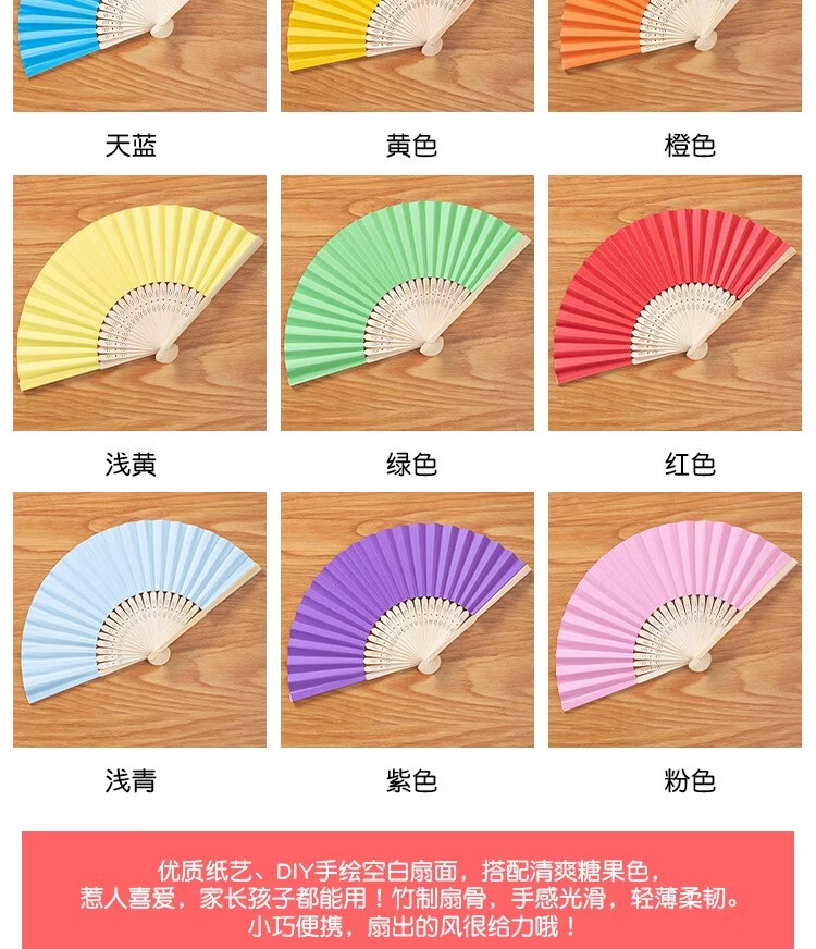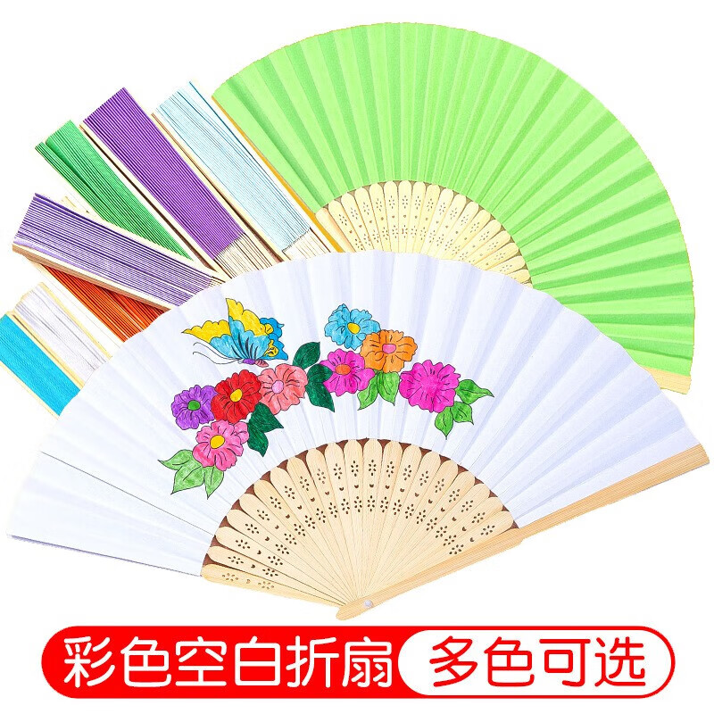 叁沃 diy空白折扇纯色纸扇彩色折扇儿童手绘折扇绘画小凉扇手工绘画涂鸦扇子 1把折扇 50个起