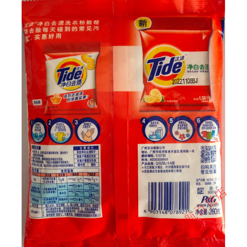 汰渍洗衣粉218克*20袋净白去渍柠檬清香家庭装易漂 柠檬香 柠檬 218克