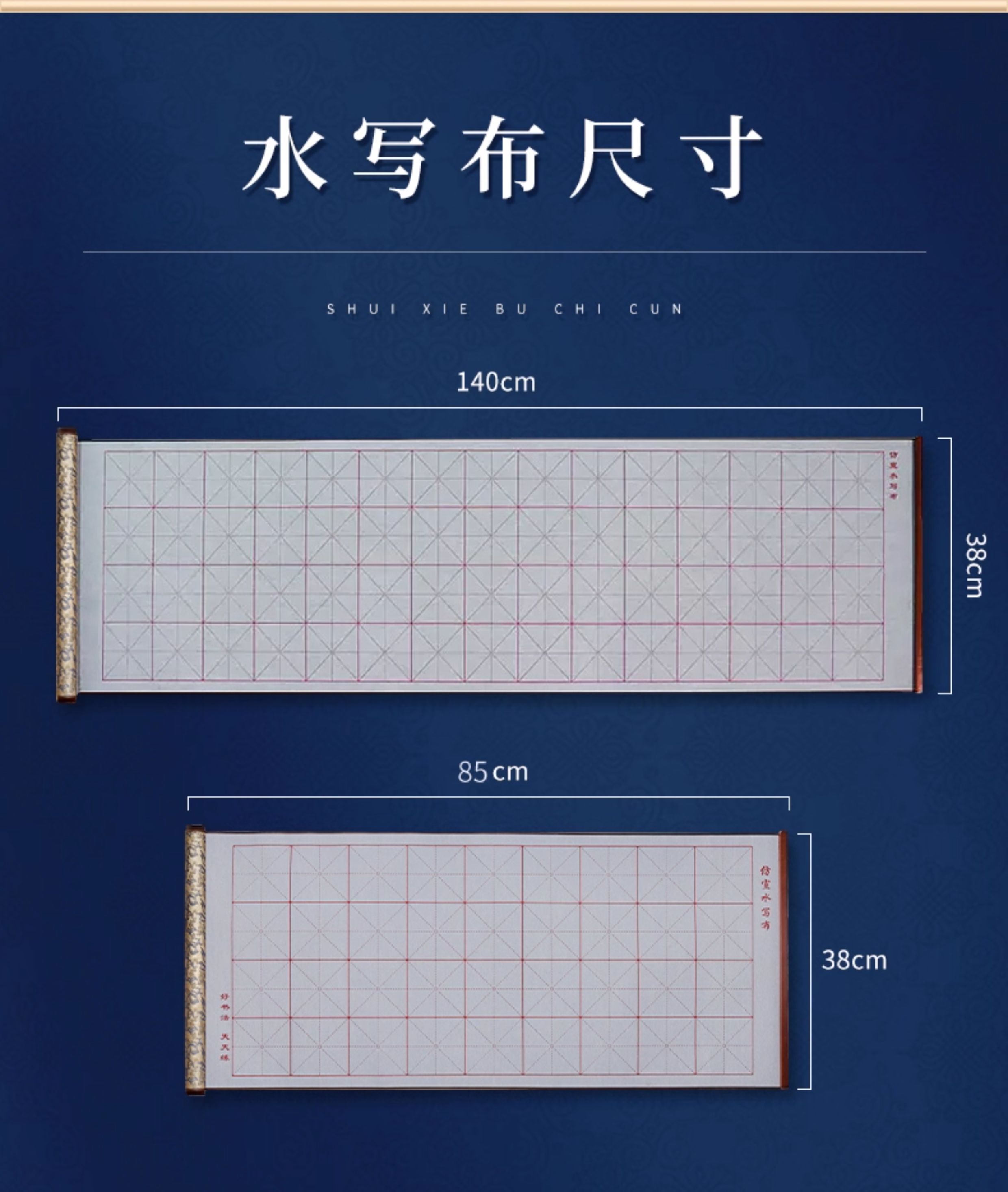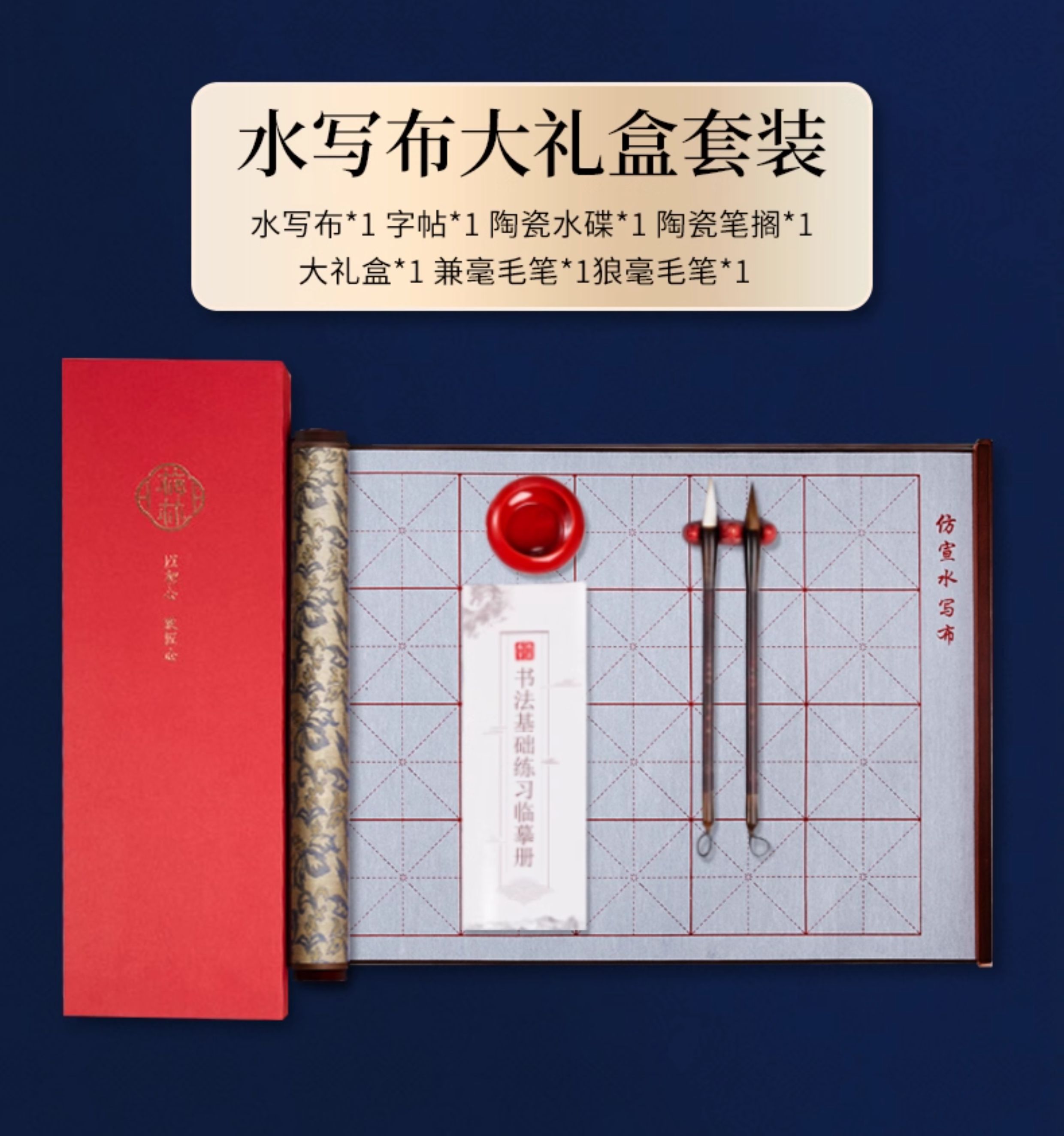 叁沃 毛笔字水写布水写书法布练字专用毛笔字帖套装书法米字格万次练习仿宣高级小学生空白练字布水洗布水写贴卷轴
