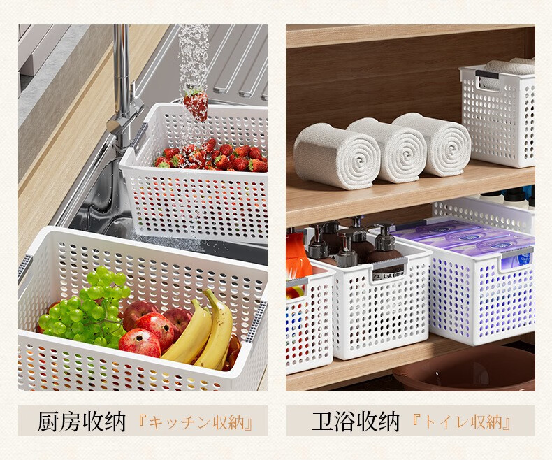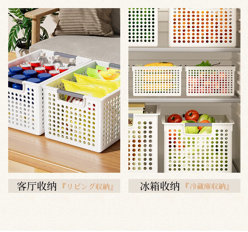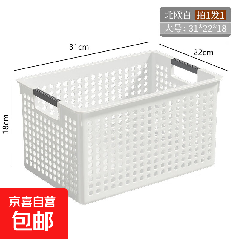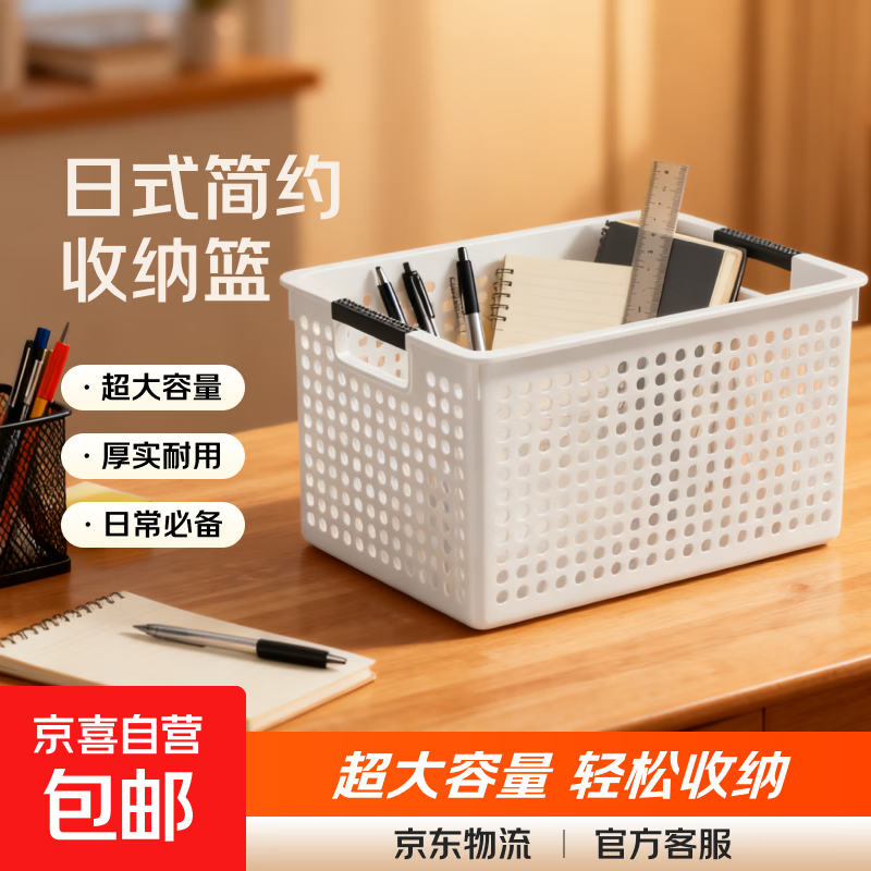 叁沃 文件文具收纳洞洞筐 简约镂空置物筐篮子 北欧白-大号