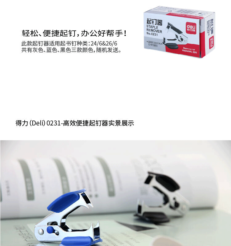 得力 小号订书机起钉器手动起钉器取钉器拔钉器取订书针办公用 起钉器0231