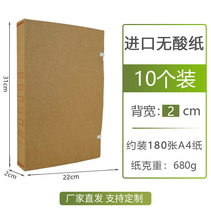 创新 文书档案盒新版进口无酸纸牛皮纸文件档案盒资料盒收纳盒 2cm-10个