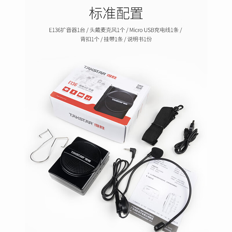 得胜(TAKSTAR)E136小蜜蜂扩音器有线小巧教学导游教师专用上课用音箱 黑色