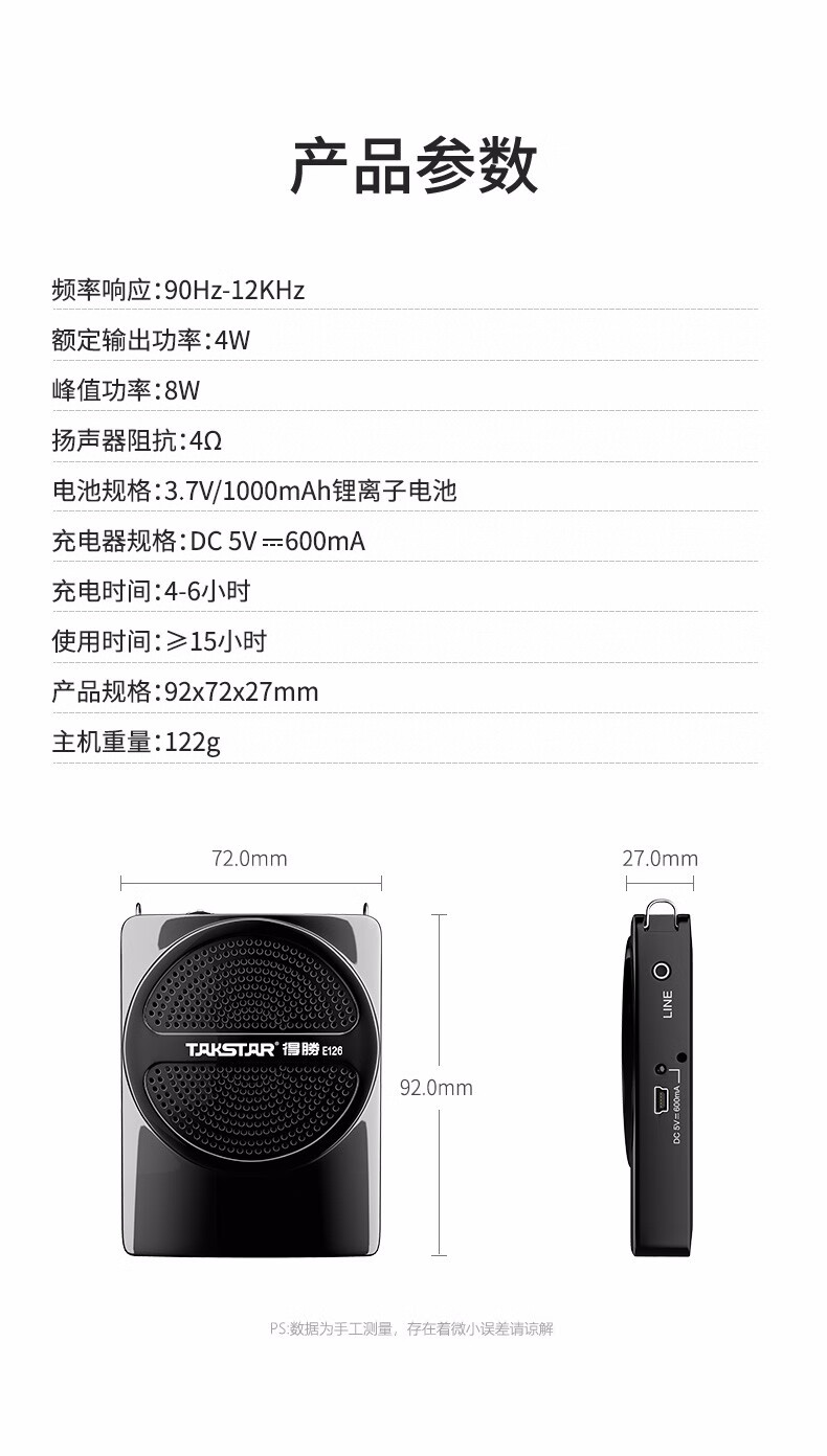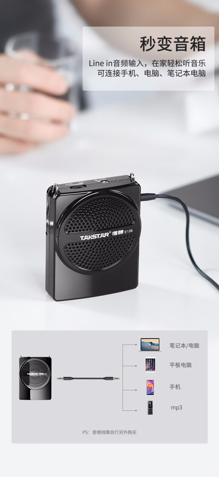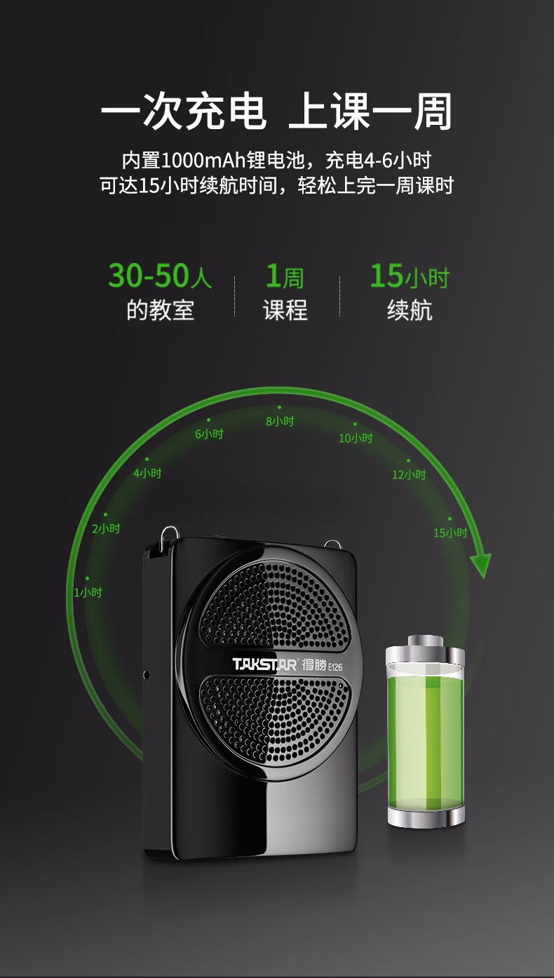 得胜(TAKSTAR) E126小蜜蜂扩音器教师专用腰挂老师教学大功率音箱德胜导游喇叭 E126黑色