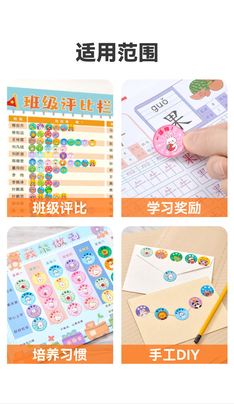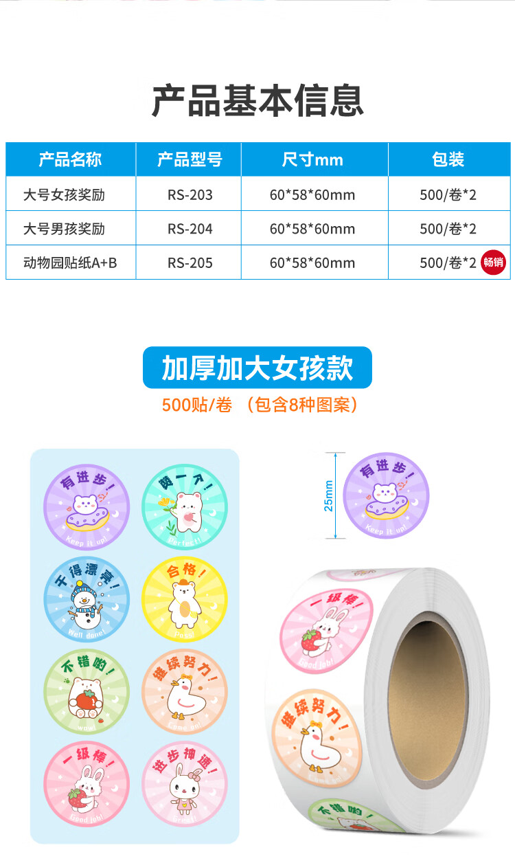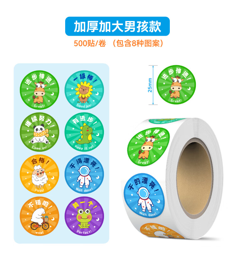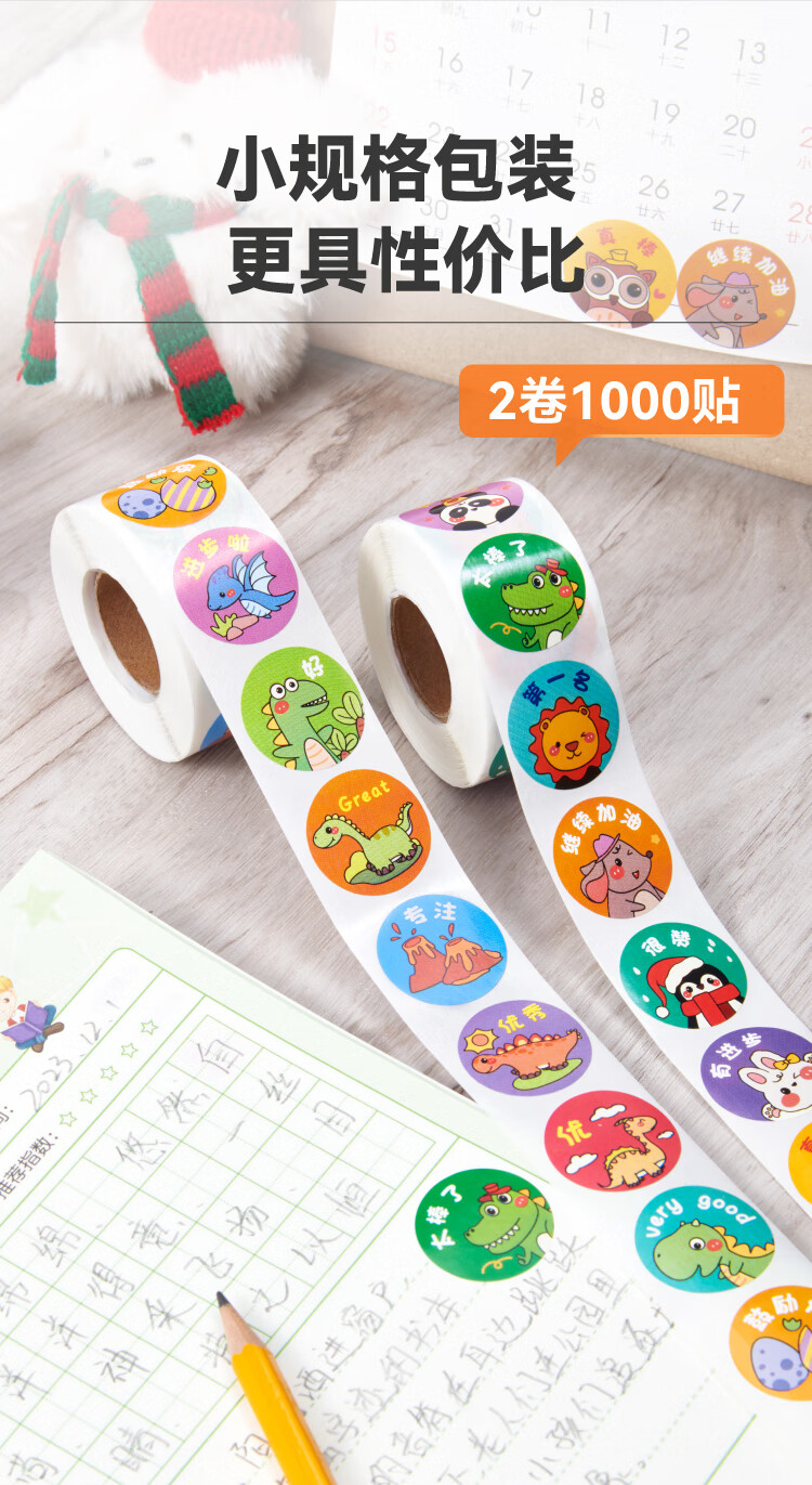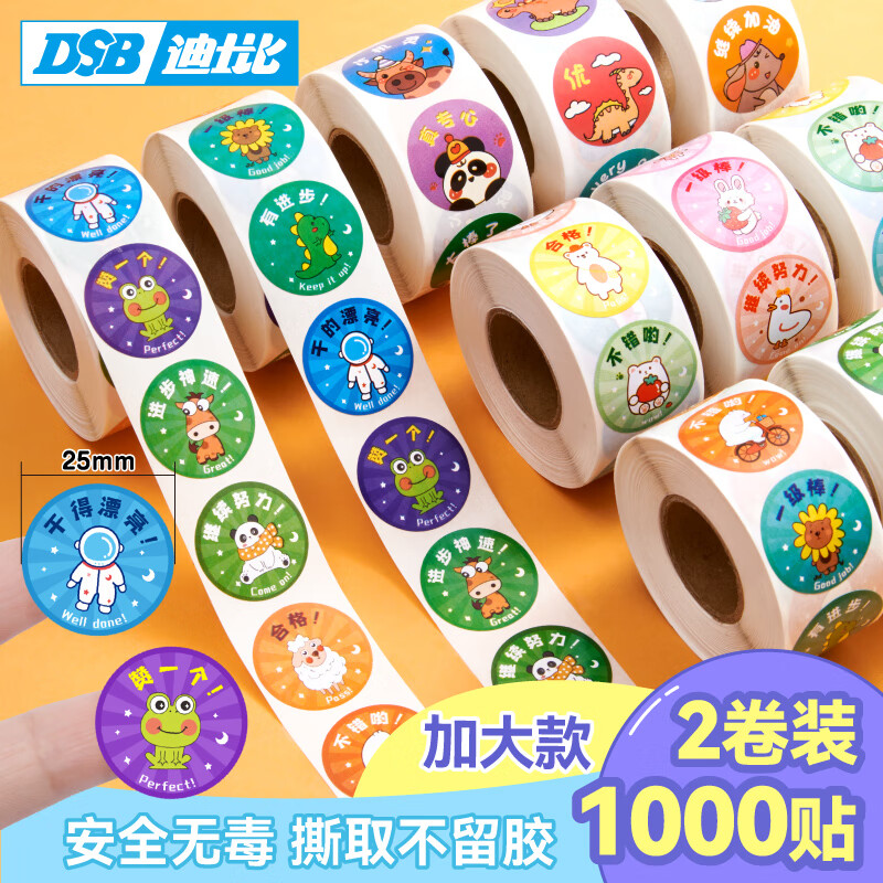 DSB(迪士比)儿童奖励贴纸圆形大号男孩奖励表扬贴幼儿园粘贴纸小贴画 1000贴 RS-204